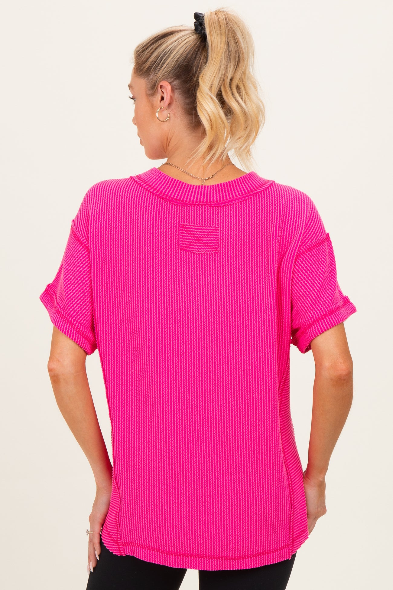 Fuchsia Ribbed Raw Hem Maternity Short Sleeve Top
