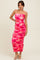 Fuchsia Rose Floral Mesh Sleeveless Ruched Dress