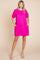 Fuchsia Textured Stripe Knit Short Puff Sleeve Dress