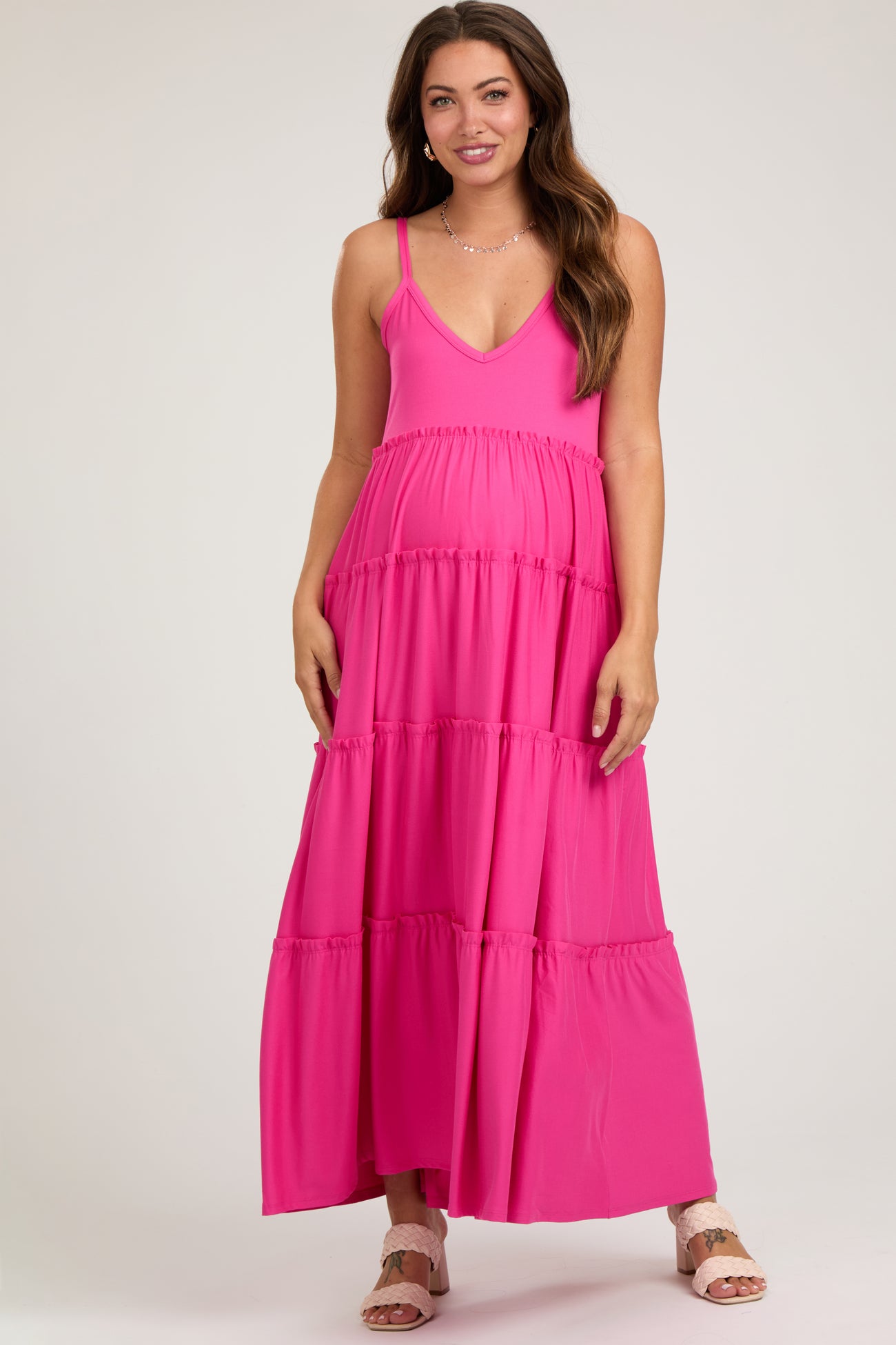 Fuchsia Tiered Sleeveless Maternity Maxi Dress