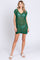 A crochet knit coverup dress with a u-neckline, short dolman sleeves, and side slits at the hem.