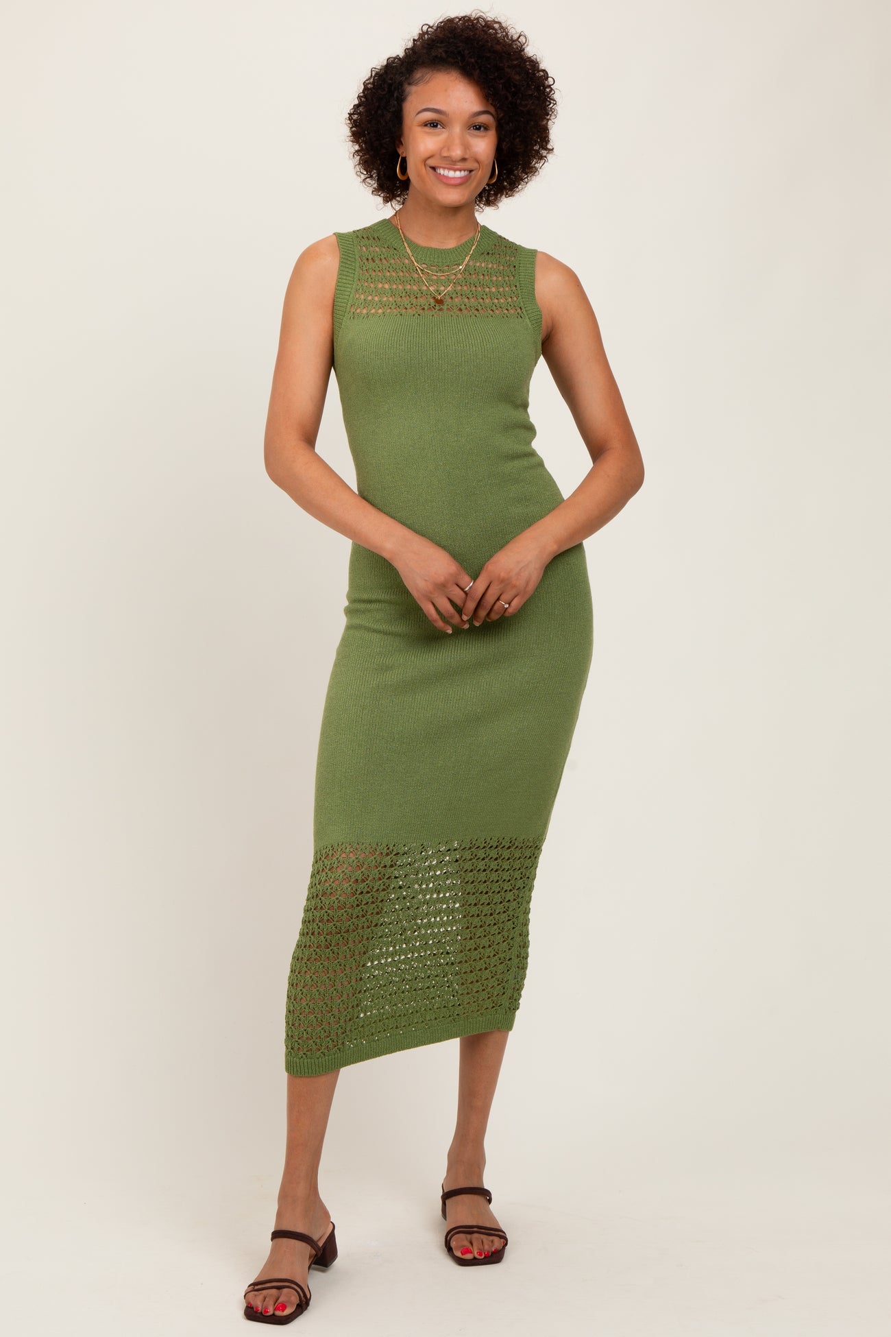 Green Crochet Knit Sleeveless Maternity Maxi Dress