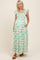 Green Floral Print Smocked Ruffle Sleeve Maternity Maxi Dress