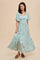 A floral maxi dress featuring a ruffle trimmed squared neckline, short flounce sleeves, a smocked bodice, and a gathered tiered skirt. Dress is lined 3/4 of the way down.