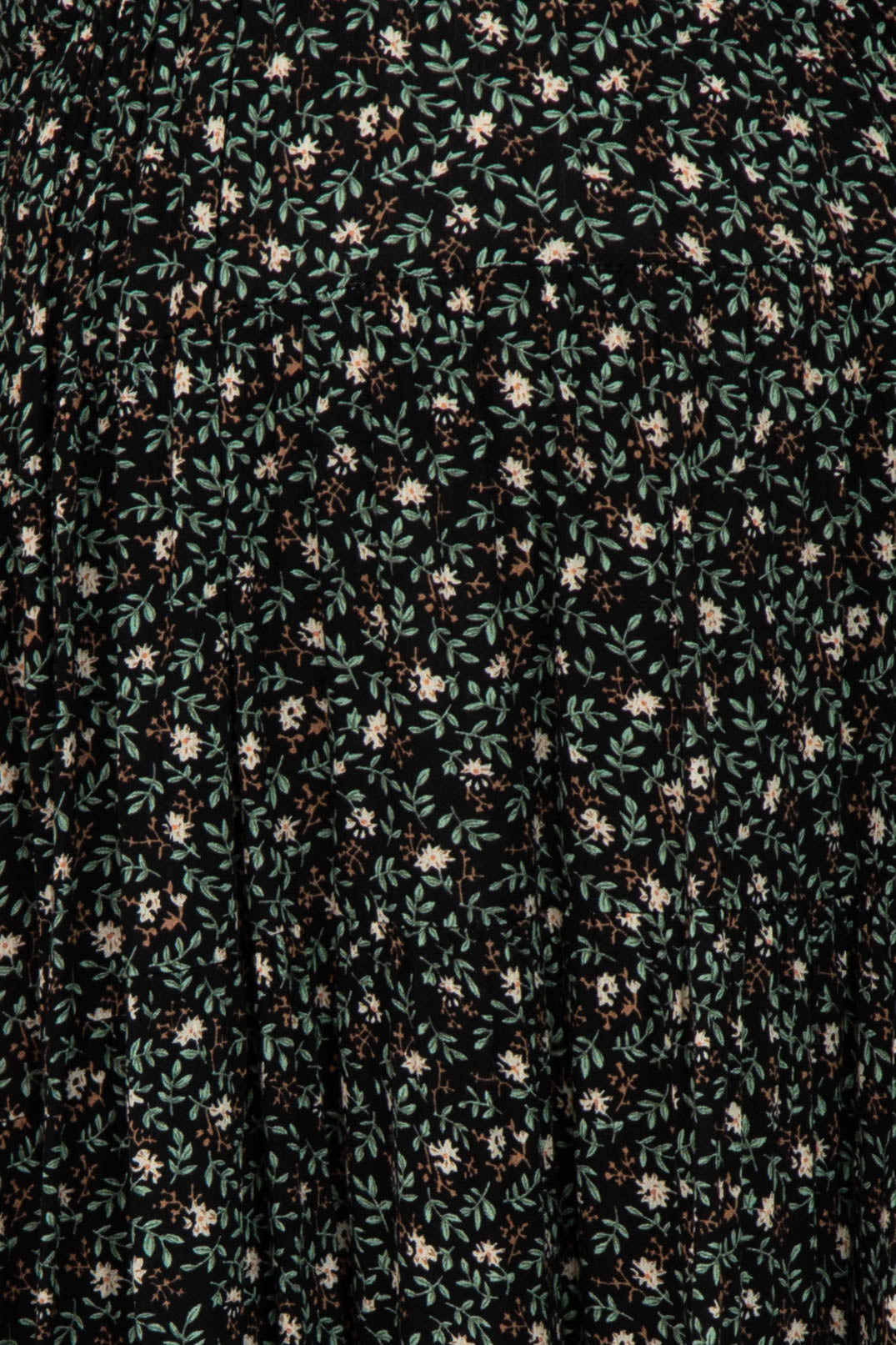 A floral print maternity midi dress featuring a v-neckline, short bubble sleeves with ruffle trim, an empire waist with an elastic band, pleated tiers and a ruffle hem.