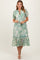 Green Paisley Front Tie Ruffle Trim Midi Dress