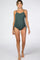 Green Ribbed Side Tie One-Piece Maternity Swimsuit