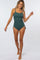 Green Ribbed Side Tie One-Piece Swimsuit