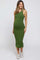 Green Sleeveless Ribbed Fitted Maternity Midi Dress