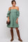 Green Smocked Off Shoulder Long Sleeve Dress