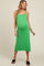 Green Square Neck Ribbed Sleeveless Maternity Midi Dress