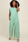 Green Striped Button Up Wide Leg Jumpsuit