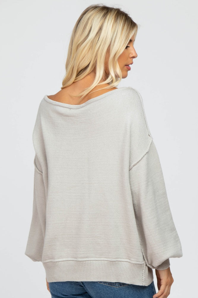 An ultra soft knit sweater featuring a boat neckline, long bubble sleeves and exposed seam detailing.