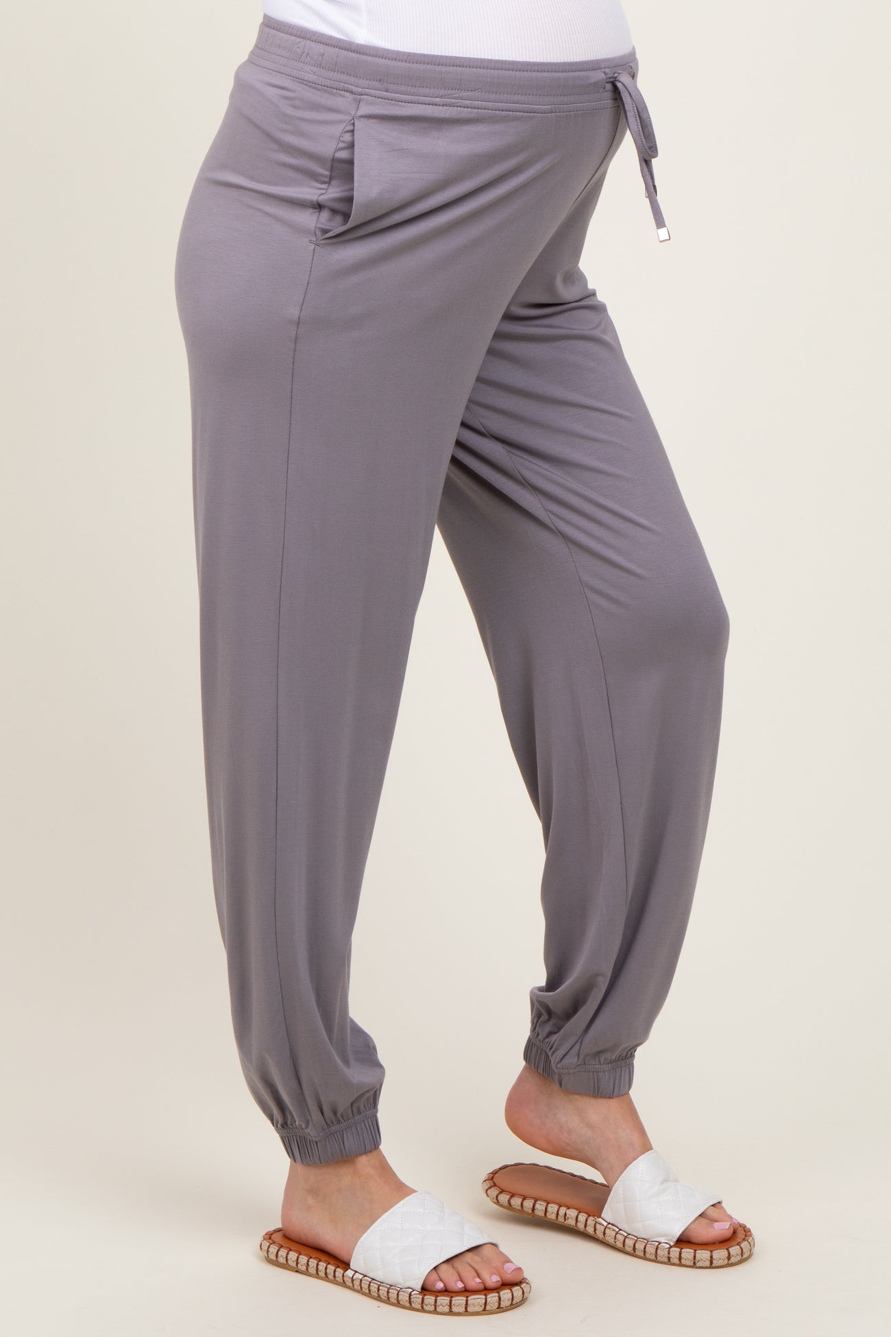 Grey Drawstring Maternity Jogger Pants