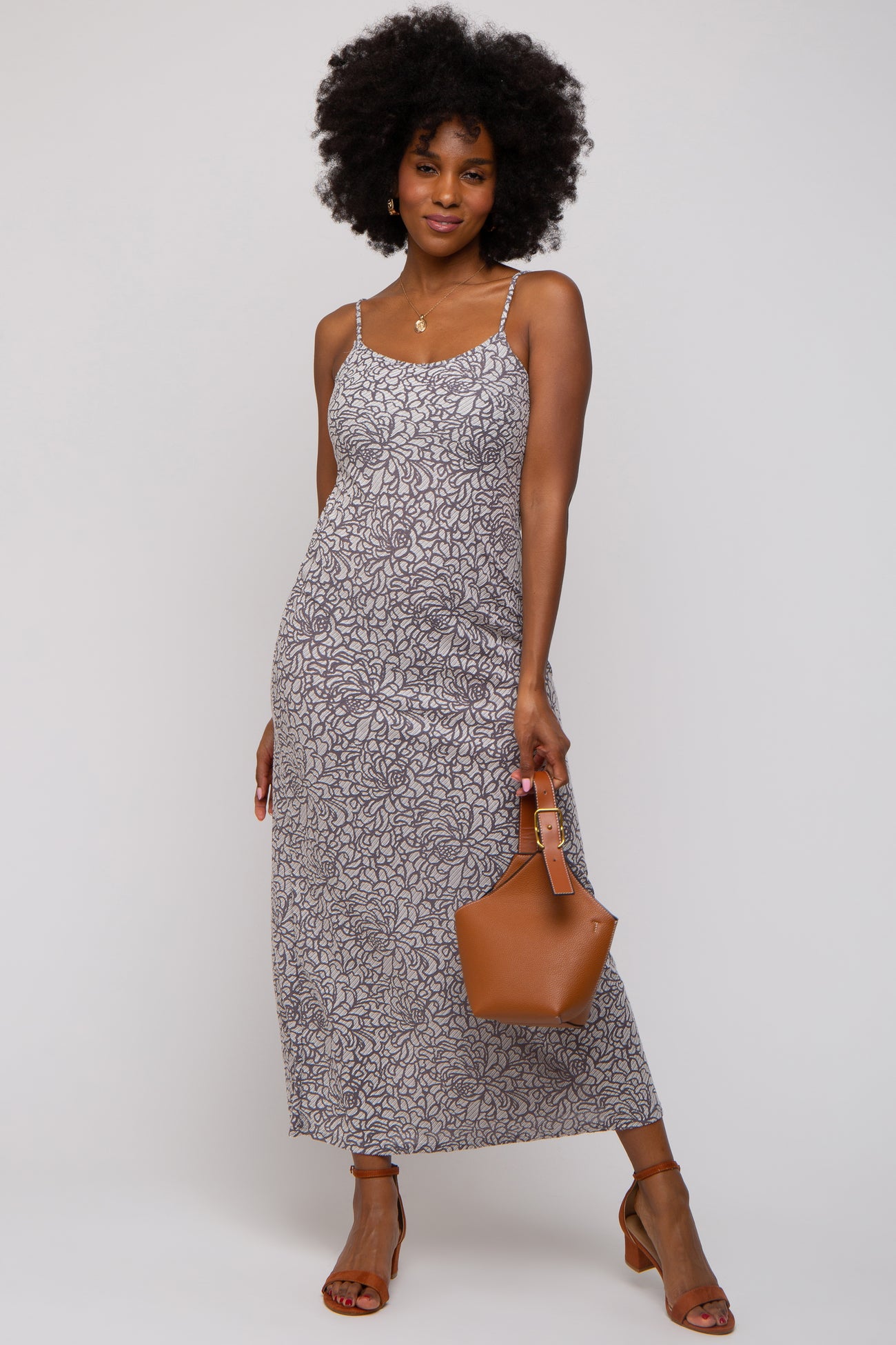 A floral maternity maxi dress with a rounded neckline and adjustable strapless.
