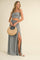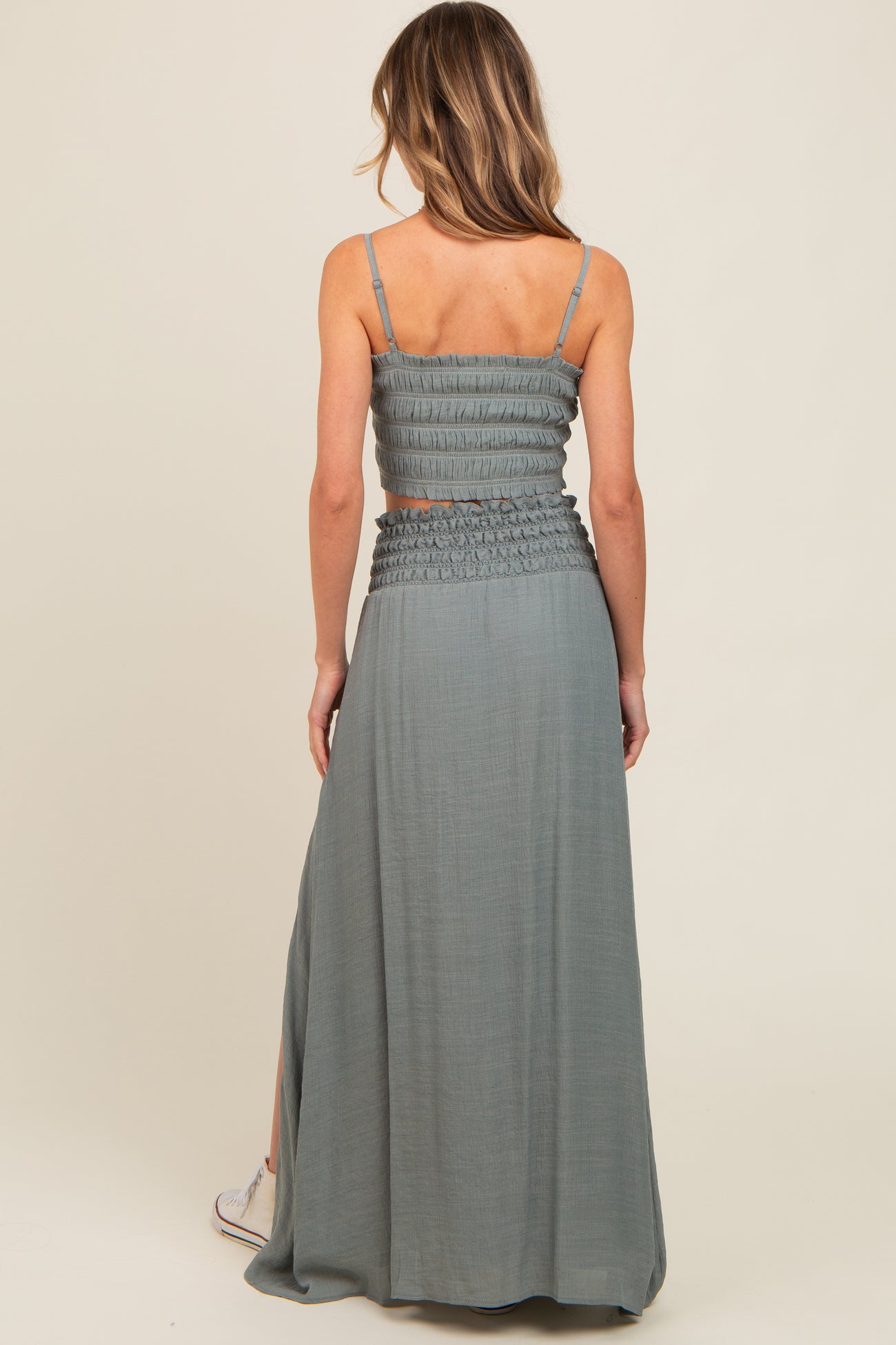 Grey Smocked Crop Top And Maxi Skirt Set