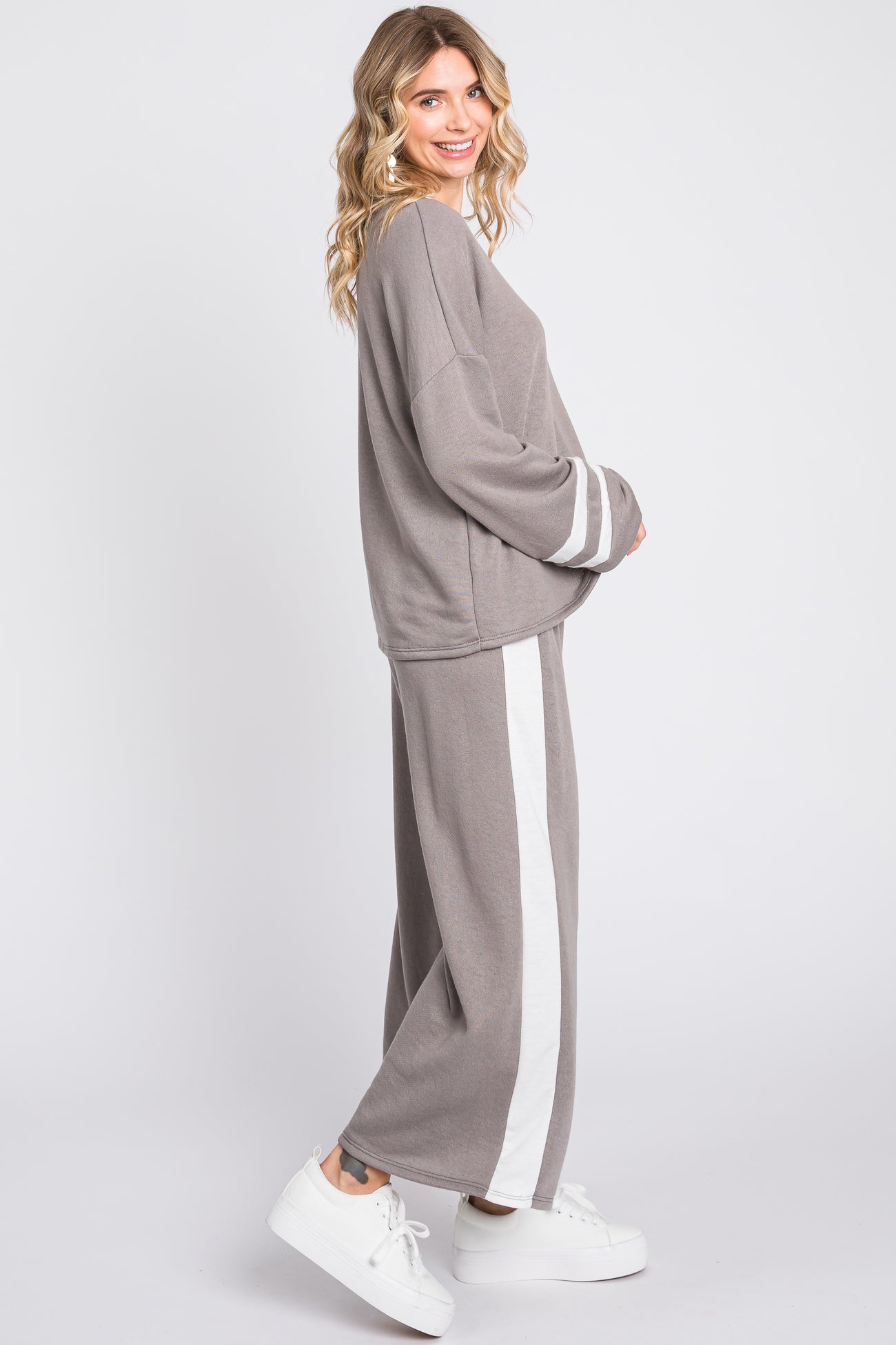 Grey Striped Long Sleeve Set