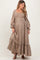 Grey Taupe Long Sleeve Floral Accent Maternity Dress