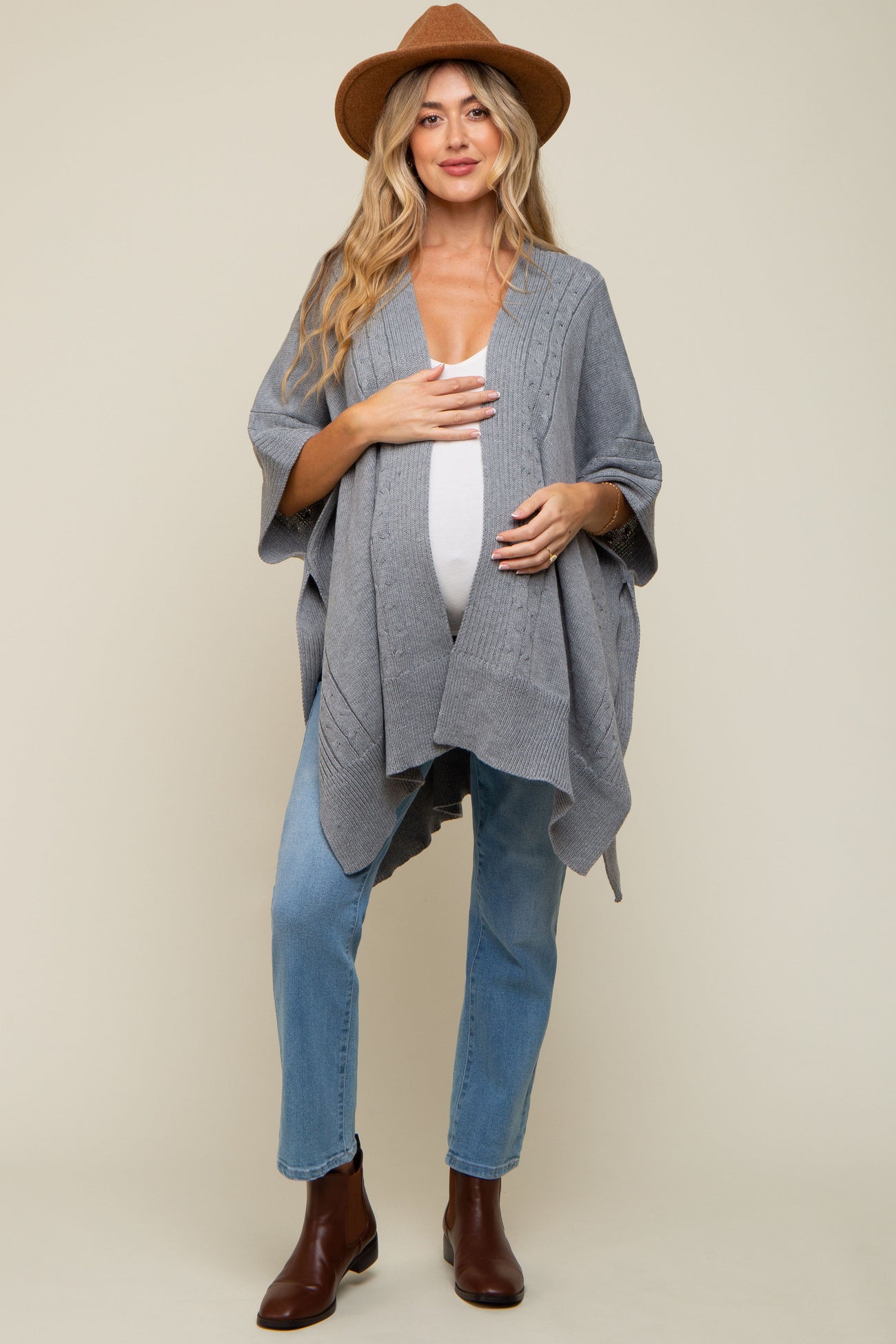 Heather Draped Cable Knit Dolman Sleeve Maternity Cardigan