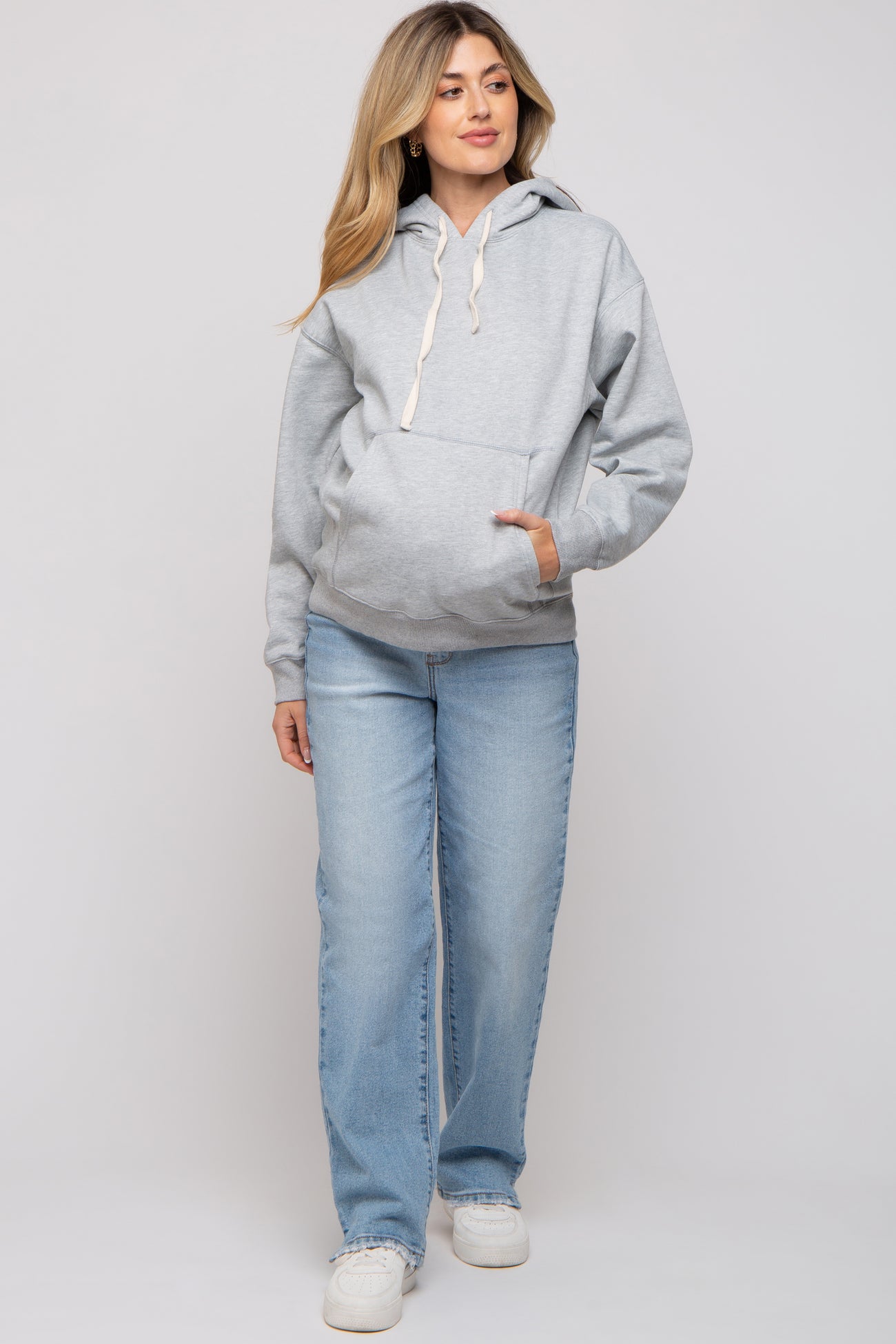 Heather Grey Basic Fleece Maternity Hoodie
