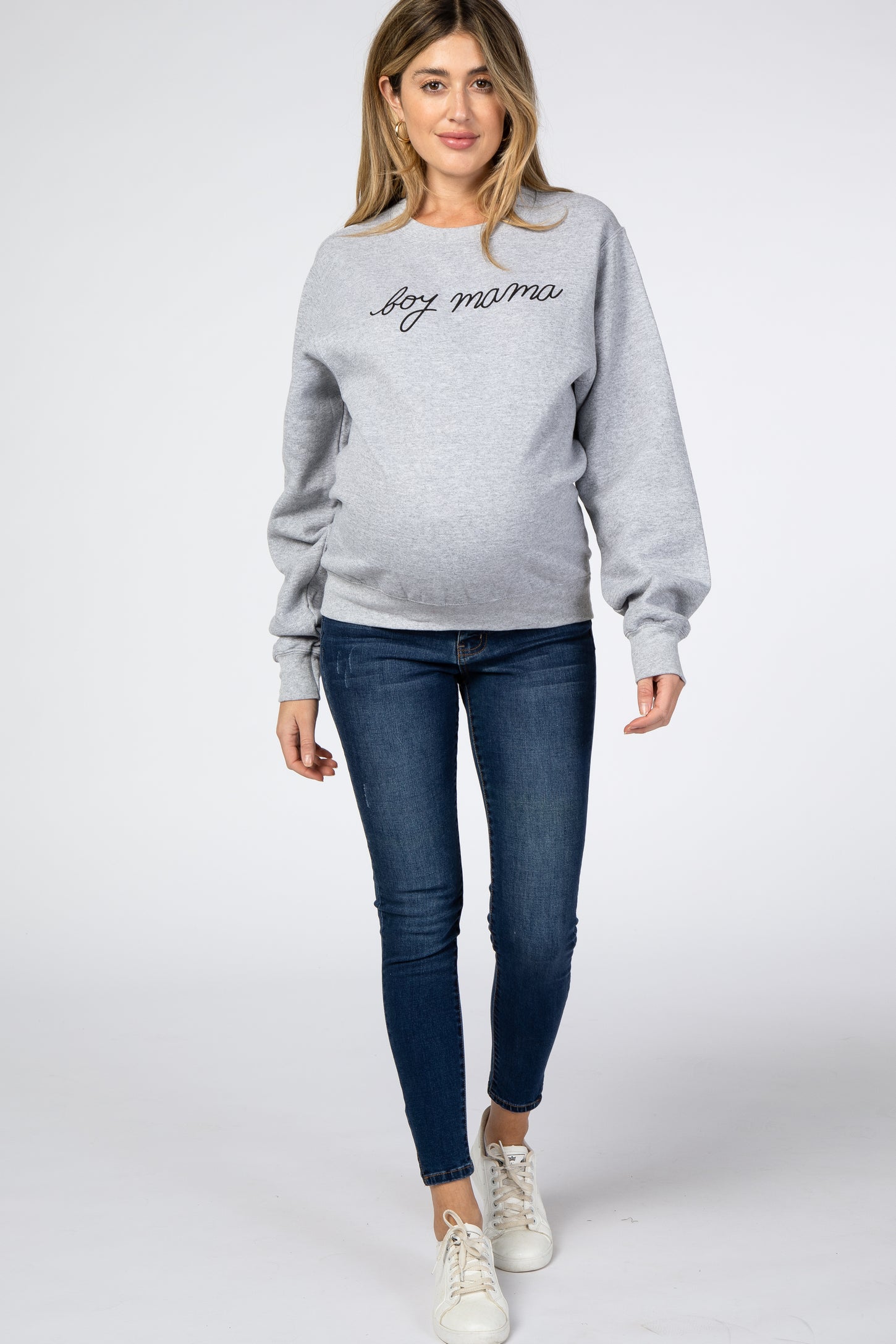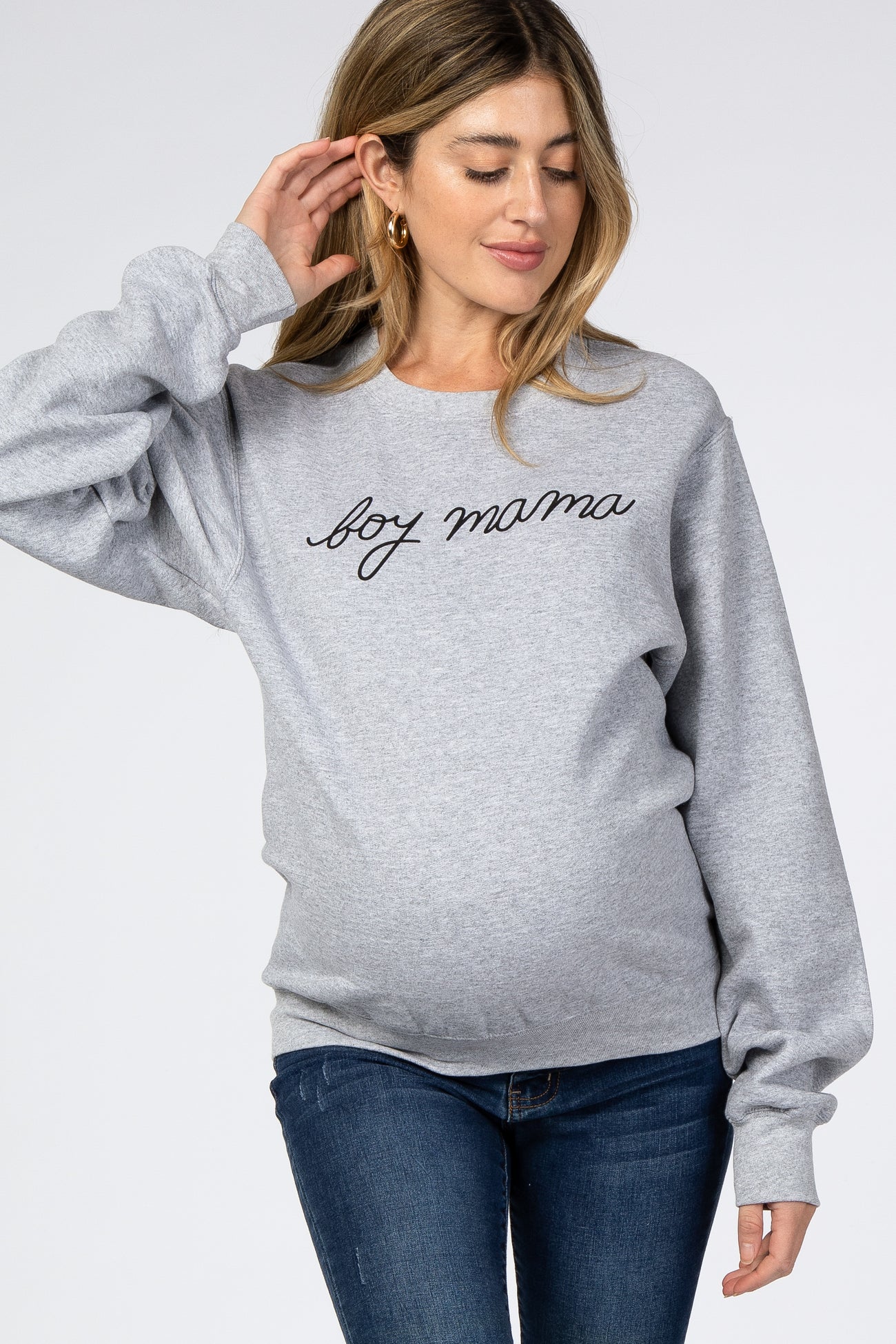 Heather Grey "Boy Mama" Fleece Maternity Sweatshirt