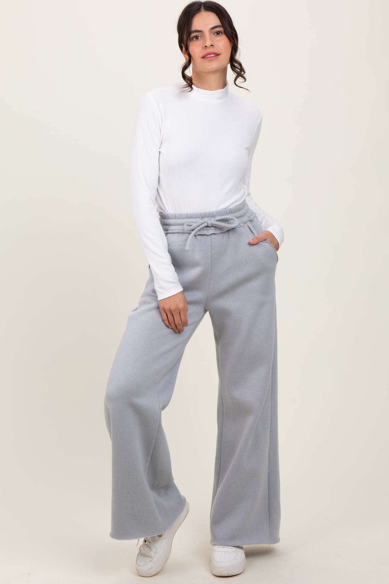 Heather Grey Exposed Seam Wide Leg Sweatpants