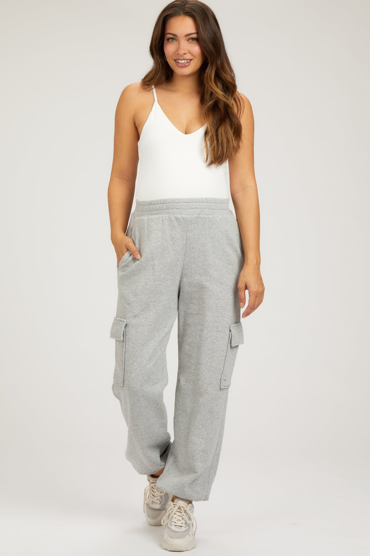 Heather Grey Fleece Cargo Maternity Sweatpants