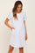 A French terry cloth dress featuring a rounded neckline, cuffed short sleeves, side pockets, and a rounded hem.