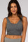 A solid heather ribbed sports bra with wide straps. Removable padding.