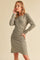 A solid fitted long sleeve dress with side ruching and wrap hem.