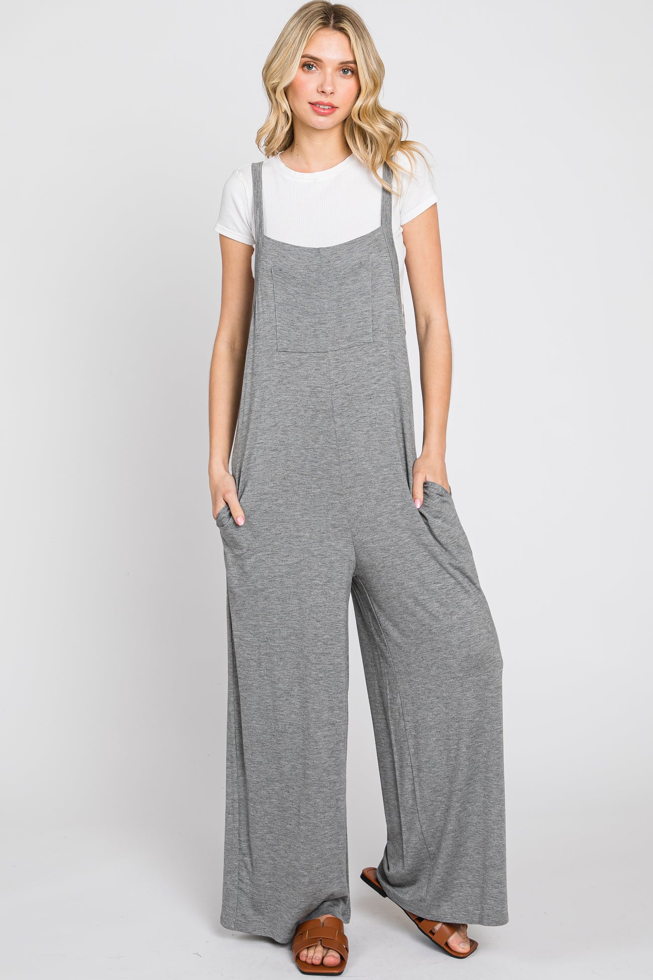 Heather Grey Sleeveless Pocketed Wide Leg Maternity Jumpsuit