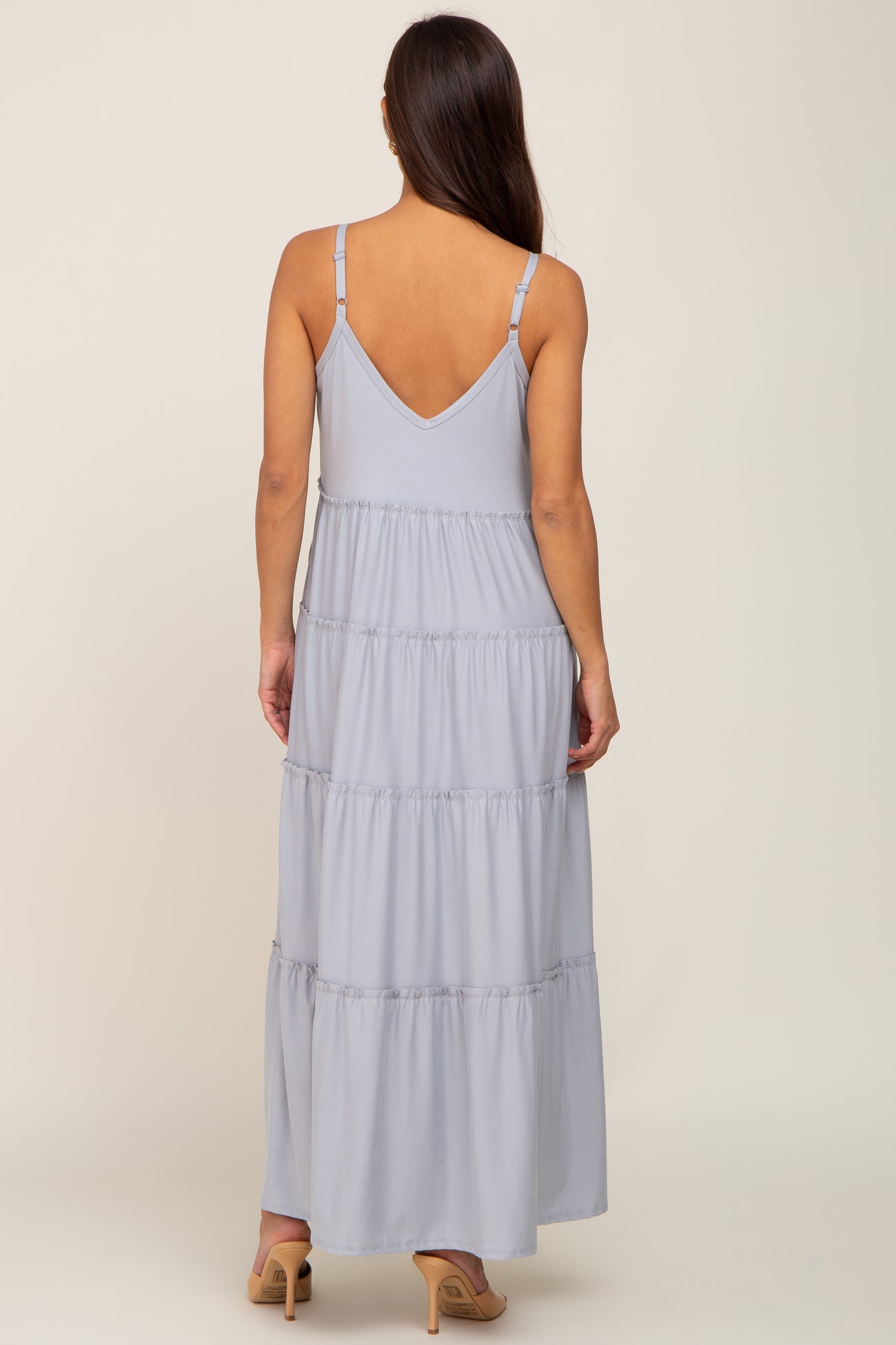 Heather Grey Tiered Sleeveless Maternity Maxi Dress