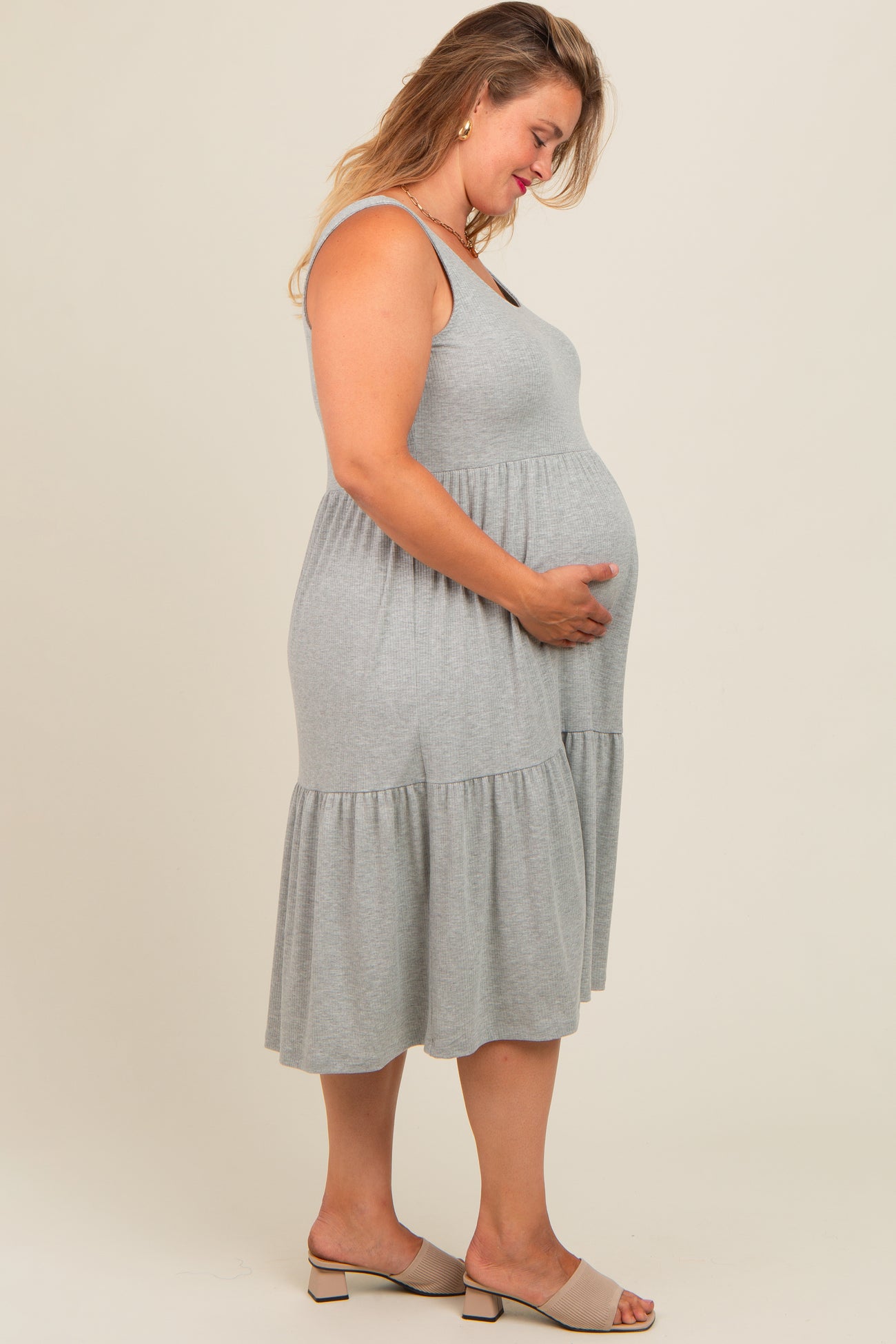 Heather Grey Tiered Sleeveless Maternity Plus Midi Dress