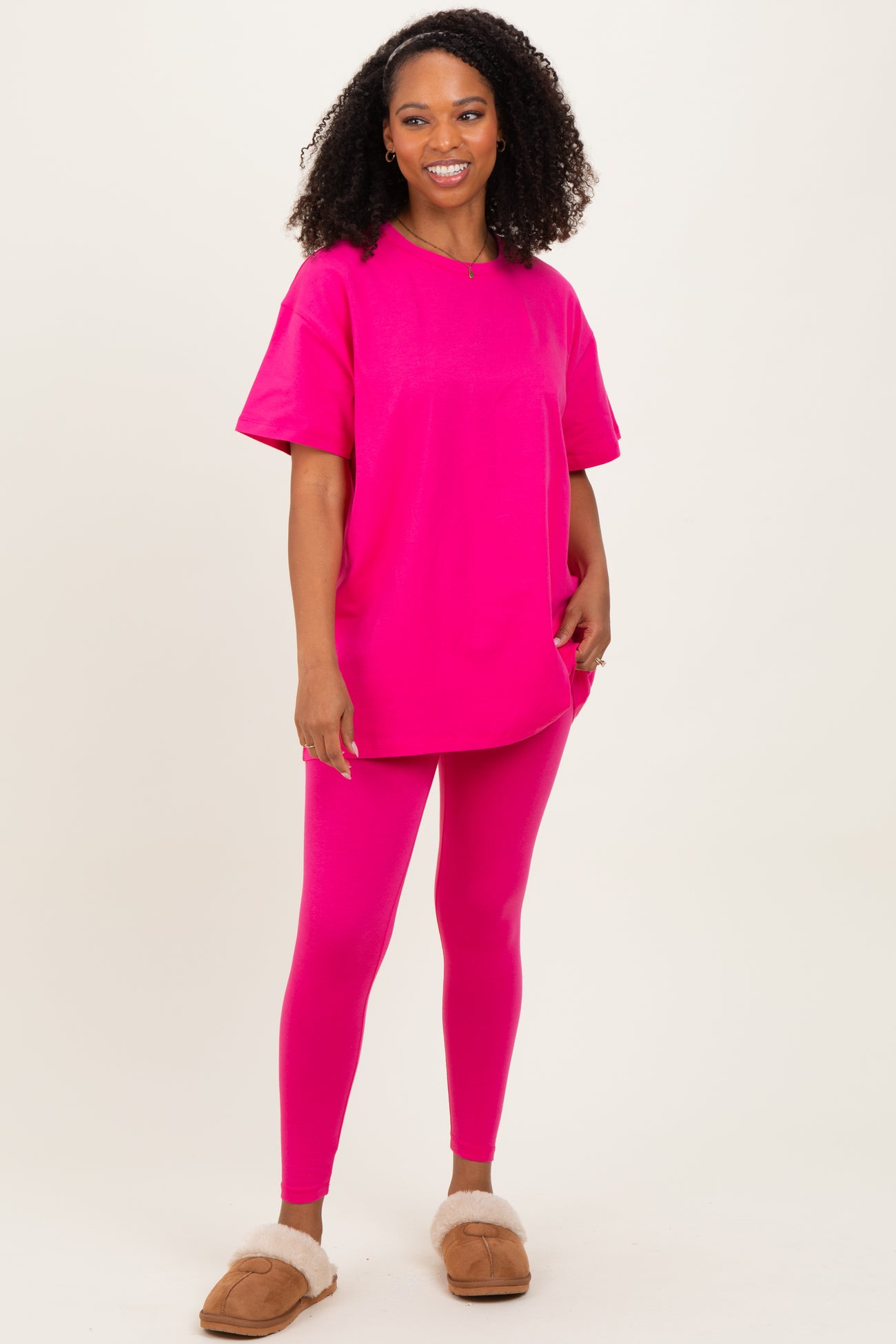 Hot Pink Oversized Crewneck Short Sleeve and Legging Set