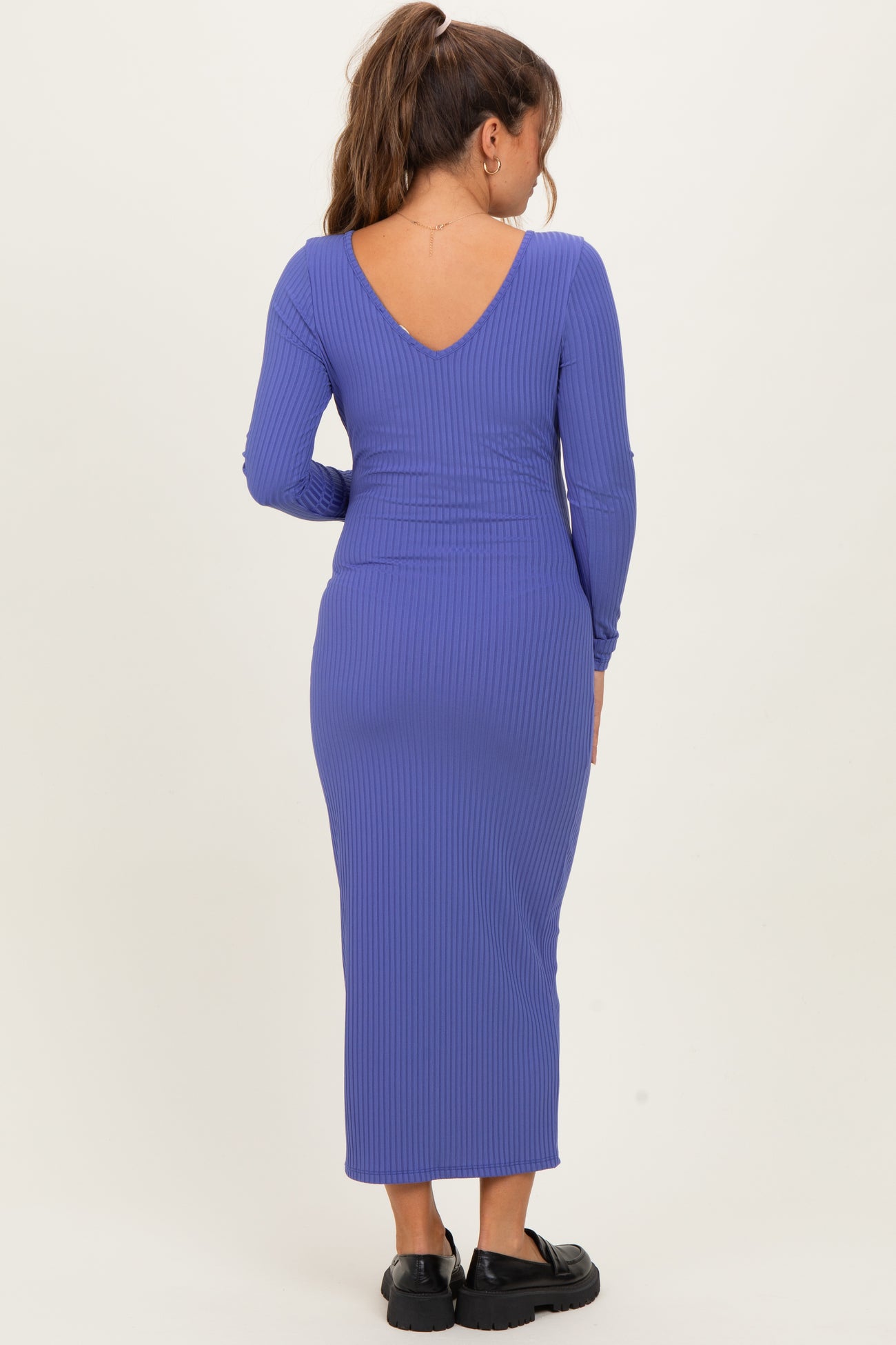 Iris Blue V-Neck Long Sleeve Fitted Maternity Maxi Dress