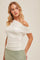 Ivory Asymmetrical Neck Line Ruched Knit Top