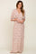 A maxi dress featuring a double v-neckline, short dolman sleeves, an adjustable tie at the back of the neck, a smocked elastic band at the waist and a side slit.