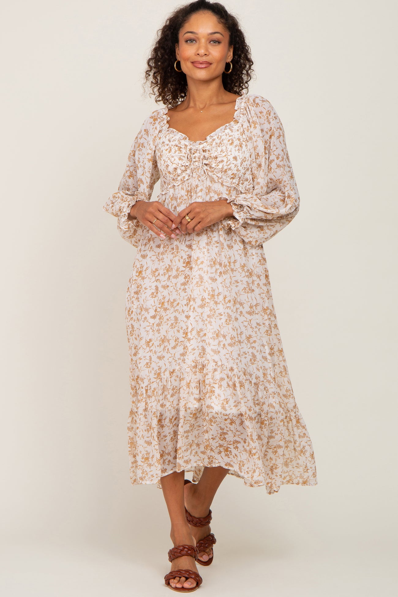 Ivory Floral Chiffon Ruffle Maxi Dress