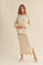 A solid fuzzy knit midi skirt with an elastic waistband and side slit.