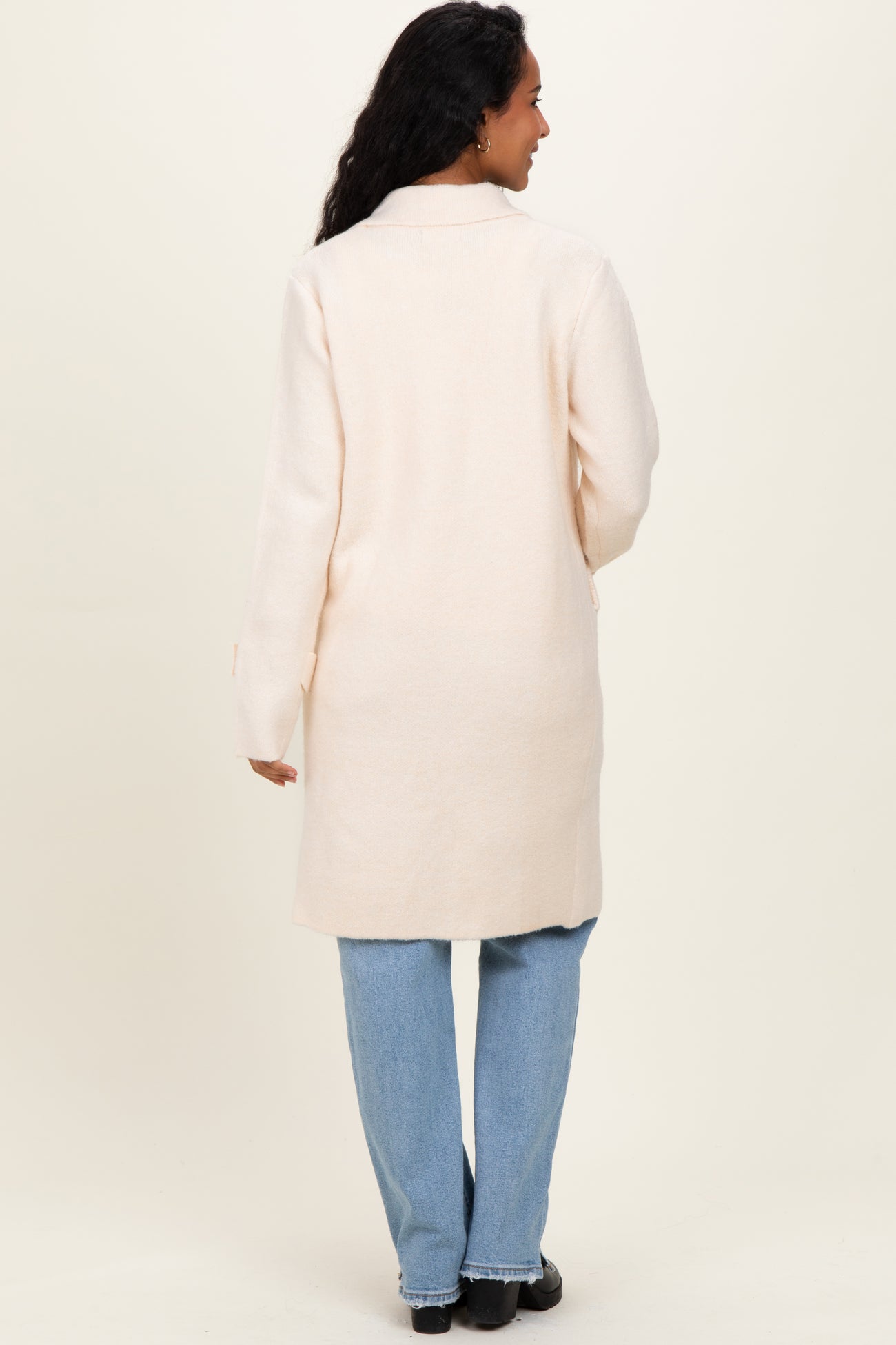 Stay cozy and stylish throughout your pregnancy with our Ivory Knit Long Maternity Sweater Coat. Designed with soft, breathable knit fabric, this sweater coat offers ultimate comfort and warmth, making it perfect for cooler days. Its relaxed, longline fit accommodates your growing bump effortlessly, while the zip-front collar adds a versatile touch for easy layering. The stylish ribbed detailing on sleeves and neckline elevates this wardrobe staple, pairing beautifully with your favorite maternity jeans or leggings. Embrace comfort without compromising fashion with this must-have maternity piece!