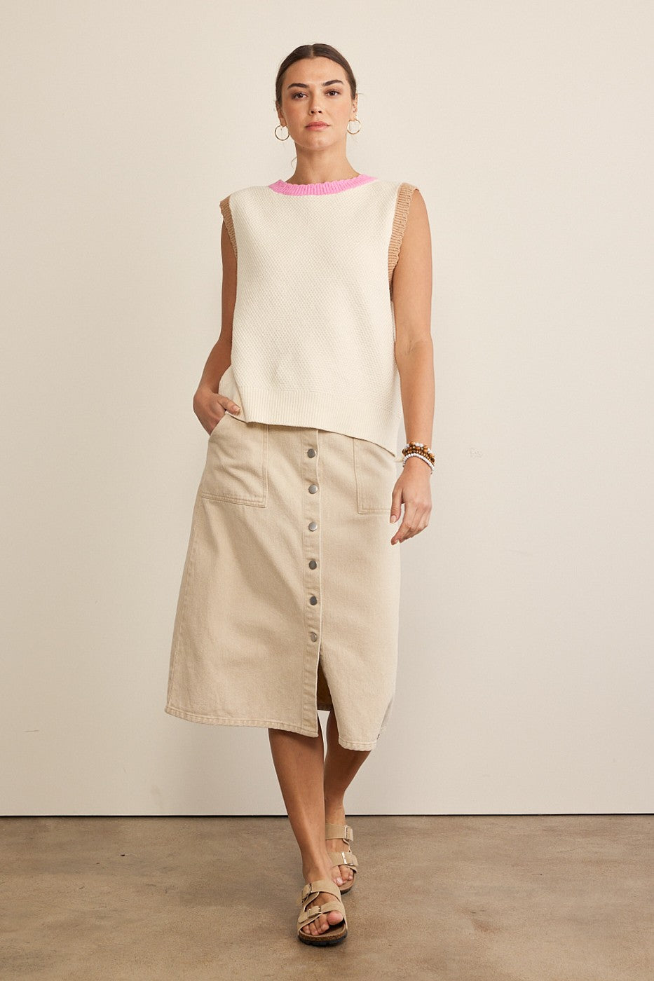 Ivory Multi Color Block Sweater Top