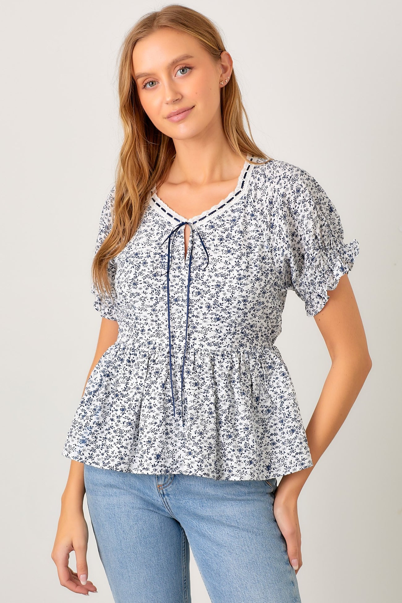 Ivory Navy Ditsy Floral Blouse