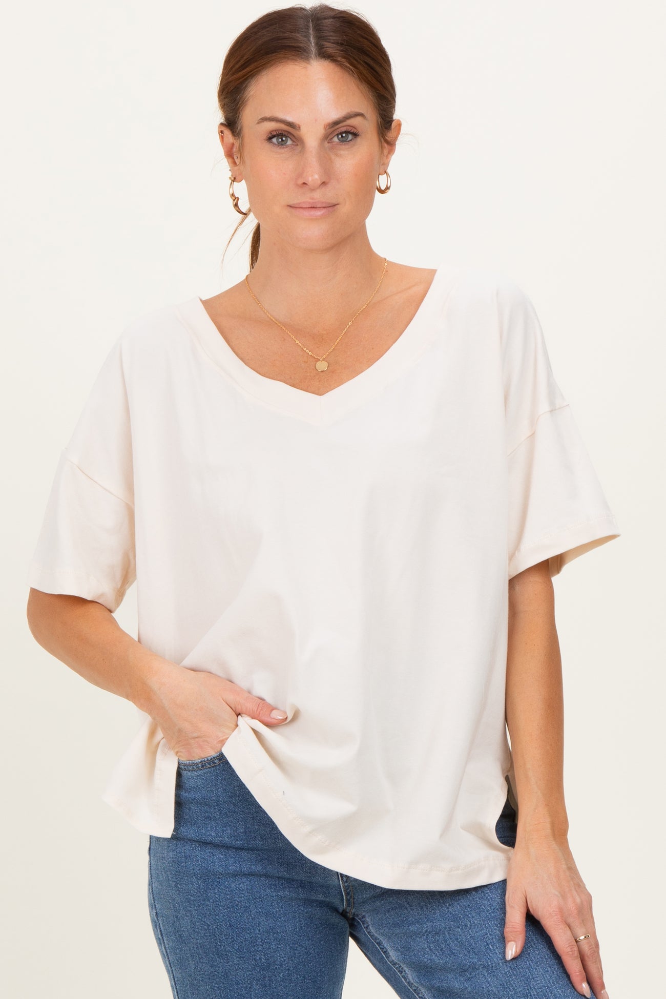 Ivory Oversized Reversible V-Neck Tee