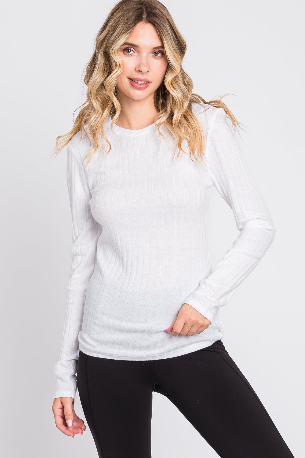 A soft rib knit top featuring long sleeves and a rounded neckline.
