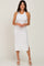 A solid ribbed sleeveless midi dress with a round neckline and two side slits.