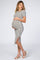 A striped fitted maternity midi dress featuring a self- tie adjustable side ruching, short sleeves and a rounded neckline.