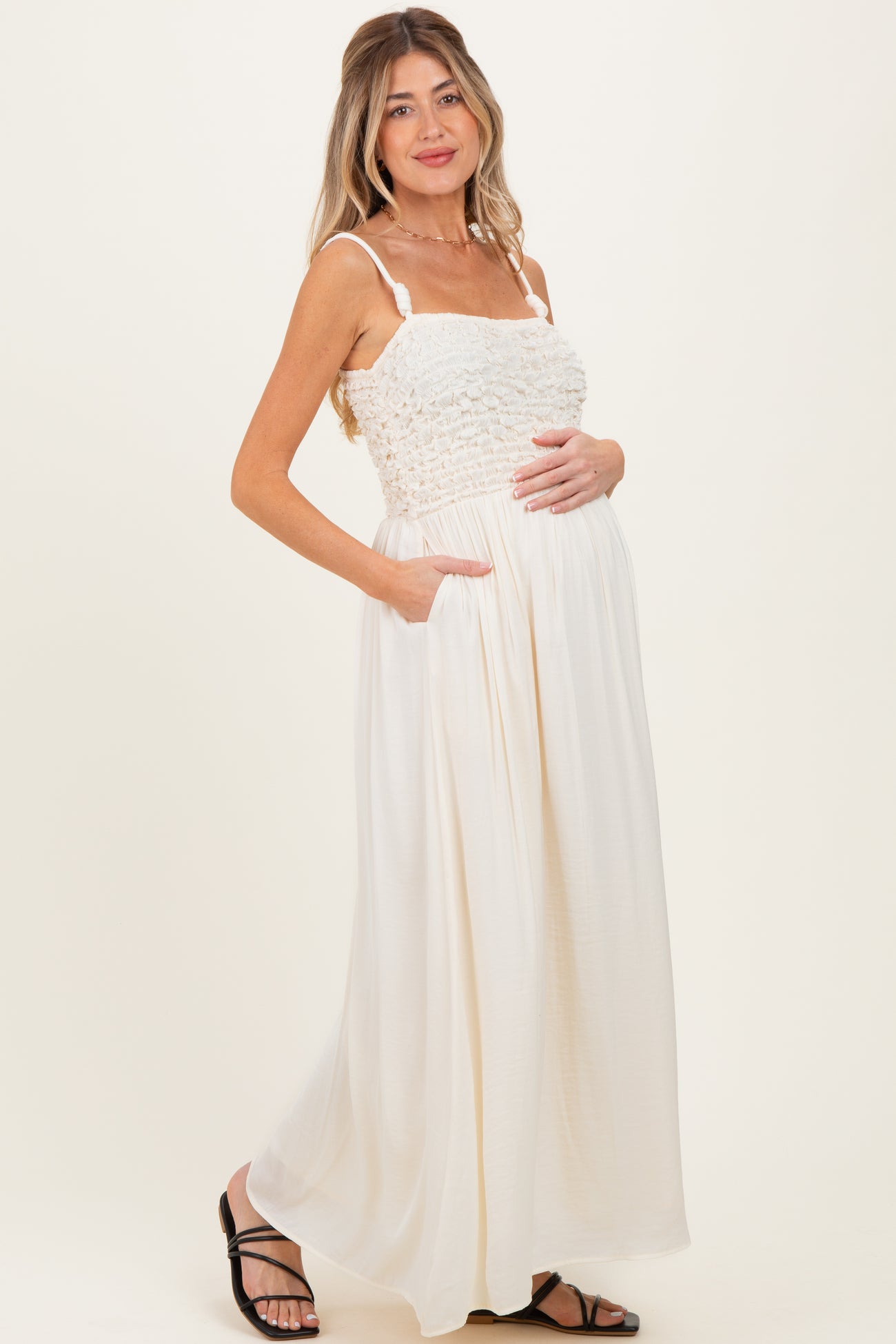 Experience effortless elegance with our Textured Smocked Maternity Maxi Dress. Designed to flatter your changing shape, the dress features a smocked bodice that offers gentle stretch and support while providing a comfortable fit throughout pregnancy. Lightweight, flowing fabric cascades beautifully to the floor, allowing ease of movement and breathability for all-day comfort. Adjustable shoulder straps ensure a customizable fit, perfect for growing bumps. Ideal for casual outings or special occasions, this dress combines style with practicality so you can feel confident and radiant every step of the way.