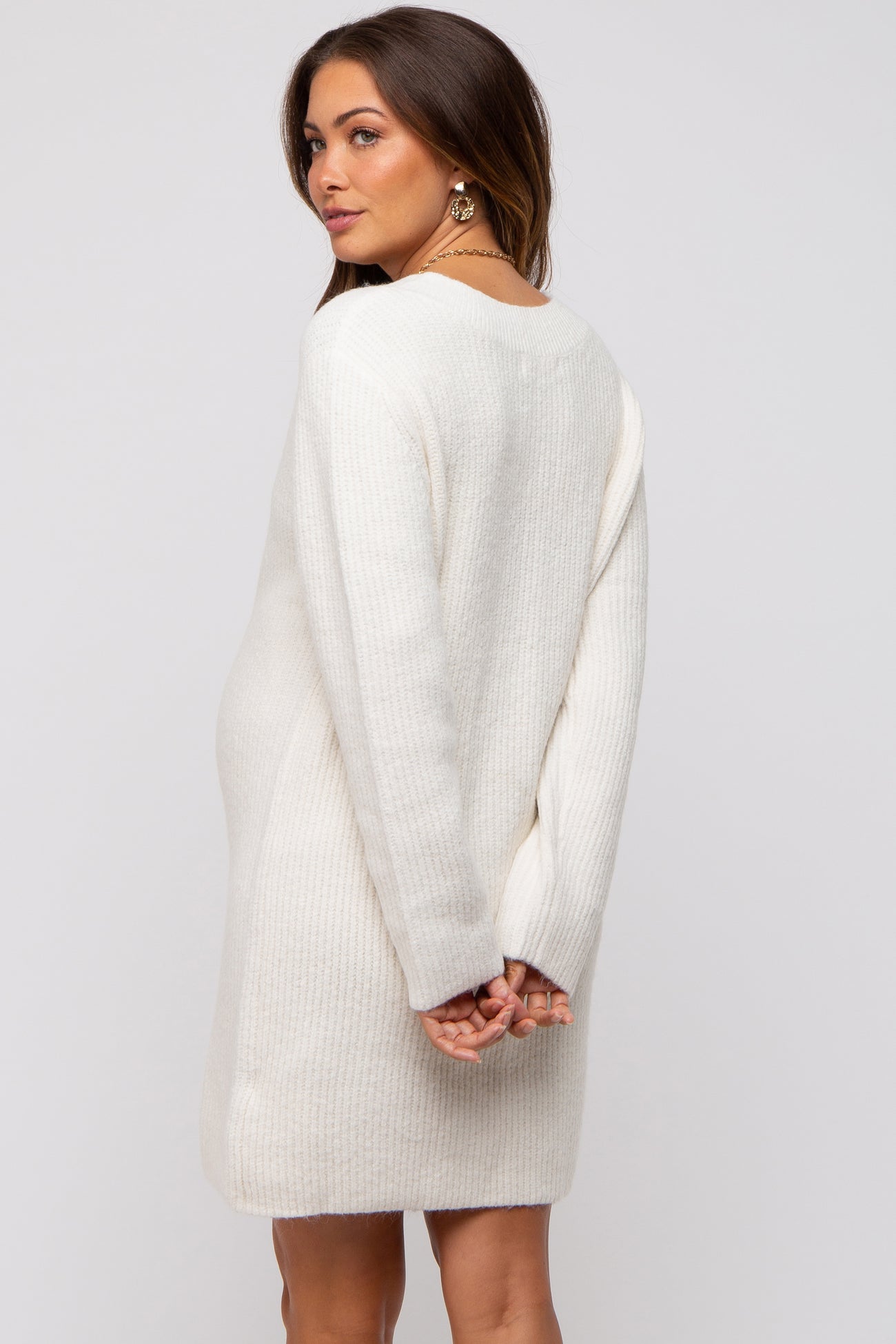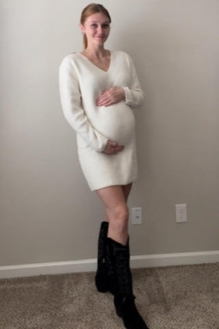 Ivory V-Neck Oversized Maternity Sweater Dress