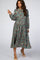 A floral print maternity midi dress featuring a rounded neckline, an elastic waistband, a pleated skirt and 3/4 length bubble sleeves with an elastic wristband.