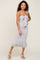 A ditsy floral print fitted midi dress featuring a v-neckline with an adjustable front tie, a front cutout, adjustable tie straps and a ruffle hem.